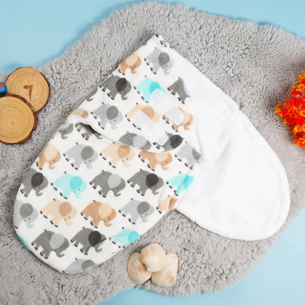 Baby Fleece Swaddle Elephant White - Sunshine